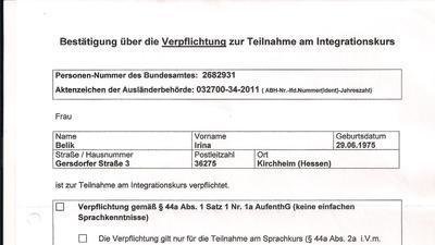 Die Behörde gibt eine Bestätigung zur Verpflichtung an einem Integrationskurs für Ausländer heraus. Der Sachbearbeiter des Landkreises schreibt eine Verpflichtung aus mit dem Zusatz, dass diese unbeschränkt gültig ist und dann heisst es plötzlich nur 2 Jahre. Hier ist ein klarer Widerspruch der Behörde erkennbar. Wir brauchen jede Stimme um diese Ungerechtigkeit zu beheben.