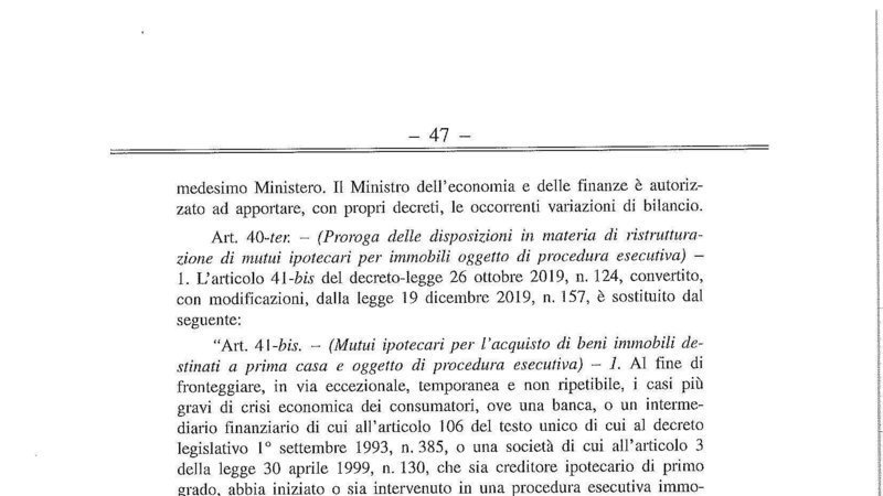 Il senato, tra le modificazioni apportate in sede di conversione al decreto legge sostegni, ha approvato la legge che permette la rinegoziazione dei mutui per le famiglie in difficoltà.