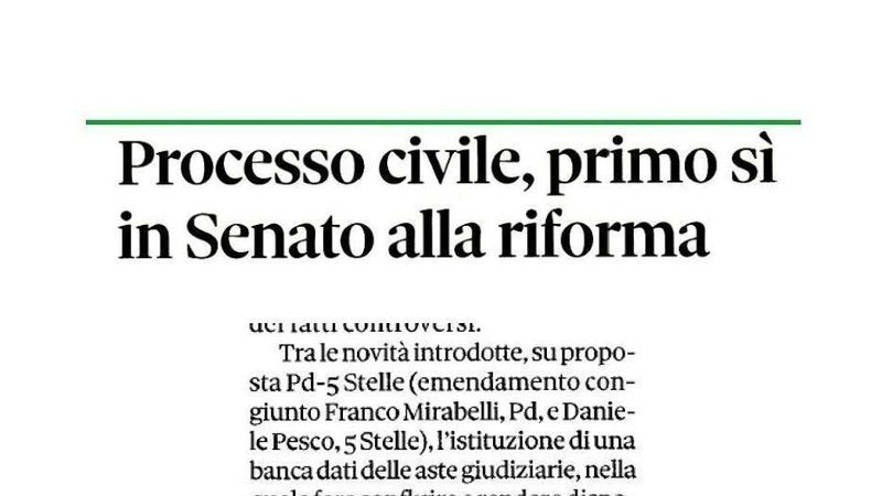 Mercoledì 15 il Senato voterà L'ISTITUZIONE DI UNA BANCA DATI DELLE ASTE GIUDIZIARIE. Un durissimo colpo per evasori fiscali e malavitosi che riciclano nelle aste giudiziarie a spese degli impoveriti.
