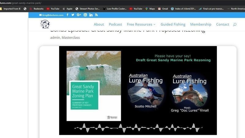 A BIG SHOUT OUT to Greg Vinall for having the chairman of the Fraser Coast Fishing Allianice Inc. on Doc Lures Podcast, coving the facts and history of the campaign to "correct" the GSMP from the time it was legislated in 2006.