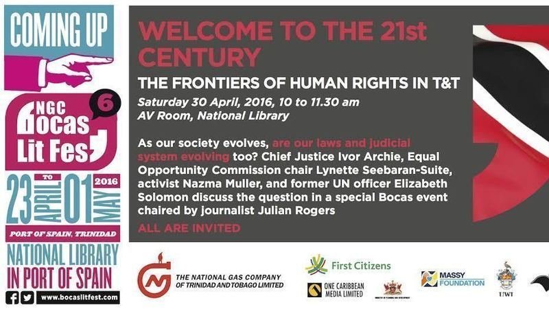 Chief Justice Ivor Archie will be joining me on a panel about human rights at the Bocas Literary Festival on April 30, from 10am to 11.30am at NALIS in Port of Spain. This is an opportunity to voice your own concerns about human rights in this country, and to show support for the legalisation movement.