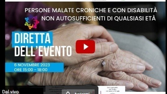 Vi invitiamo a non perdere Lunedì 6 novembre, a partire dalle 15:00, la diretta dell'importante evento di Perugia: "Persone malate croniche e con disabilità non autosufficienti di qualsiasi età"