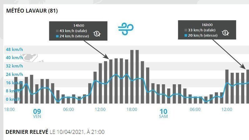 Durant ces 2 journées de vent d'Autan durant lesquelles la vitesse du vent dépassait largement les 19 km/h (limite légale pour pratiquer des épandages, quels que soit les produits utilisés), le Domaine des Vergers de Fontorbe ne s'est pas privé :