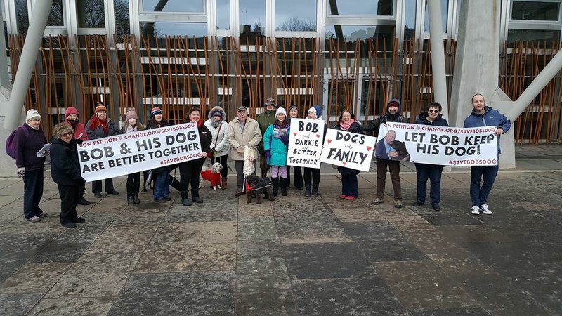 Atualização do abaixo-assinadoLet Bob keep his dog. Bob (87) lived in a care home with his close companion DarkieSuccessful rallies at Westminster and Edinburgh