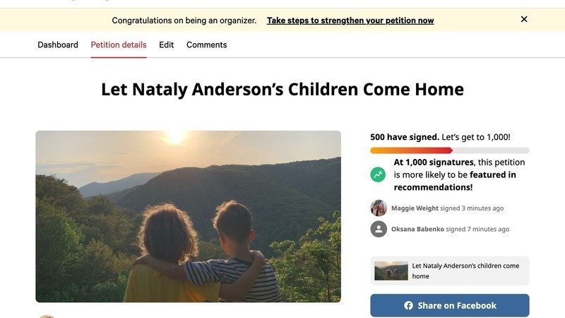 I am over the moon that so many people have already signed to support me and my children with our simple request: to let my boys come home to their mum. Thank you for your support. It means the world to us at a time when the courts have shown us: no-one will protect our rights and welfare or listen to my children's voices.
