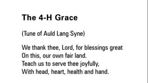 Recently a discussion arose on Facebook regarding the 4-H Grace. As a result of this discussion 4-H Ontario Staff sent out an email stating that the 4-H Grace should cease being used. This particular grace has been a staple in the 4-H Organization for well over 100 years and to just tell people to stop using this without even a conversation with local Association or with the 4-H Ontario Board of Directors really bothered me.