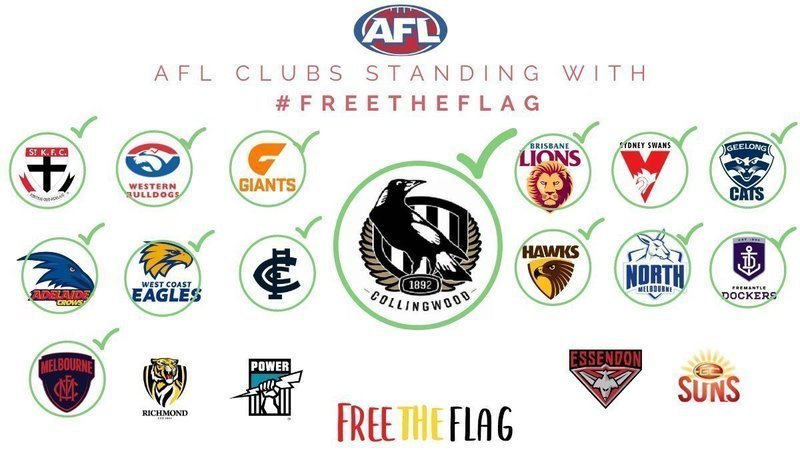 The other big news is today the AFL has given permission for every club to wear the Free the Flag campaign t-shirt in their pre-game warmup...let’s hope we can get them there in time! We look forward to the AFL releasing their official statement on Monday. We hope the AFL stands with the many clubs and over 100,000 Australians who are supporting #FreeTheFlag.