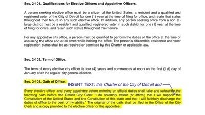 Did you know that Detroit City Officials are NOT required to take an Oath of Office to support the Charter of the City of Detroit?