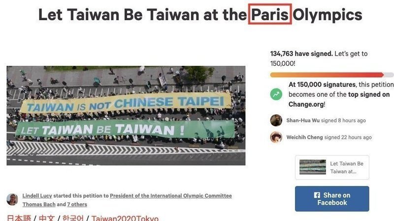 Update: "Tokyo" has been replaced with "Paris" in the petition title. The addressees have also been revised to include: