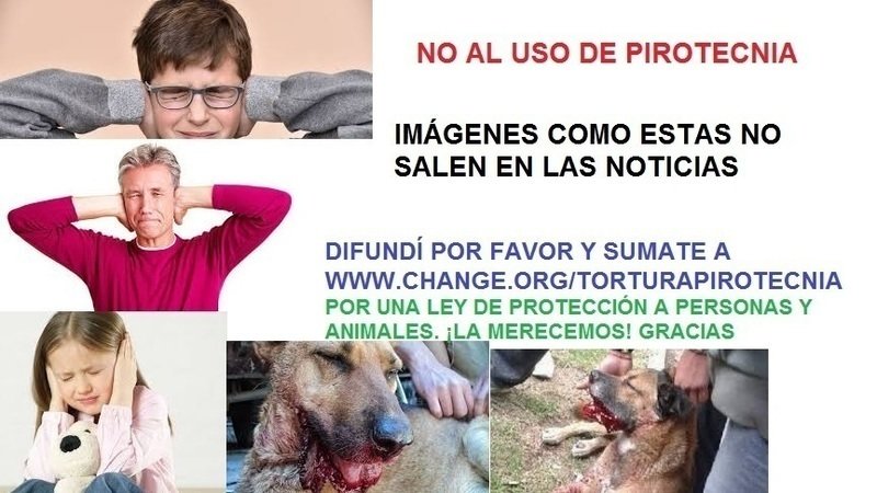 Los invito a que acompañen esta petición con su firma, ya que pretendo que tanto el defensor del pueblo de la provincia de Bs As Guido Lorenzino y la defensora del pueblo de Vicente López Dra María Celeste Vouilloud puedan tomar nota del asunto y puedan proteger a las personas y animales que suplican por una consideración con respecto al uso de la pirotecnia.