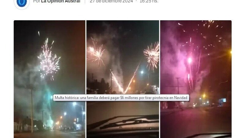 Hola a todos , aunque parezca increíble todo el apoyo durante estos 10 años de campaña por la toma de conciencia del no uso de la pirotecnia con estruendos en lugares como Caleta Olivia Santa Cruz están dando sus frutos, una familia por el uso de pirotecnia fue multada con 6millones de pesos, Ds quiera que los jueces y autoridades copien este ejemplo