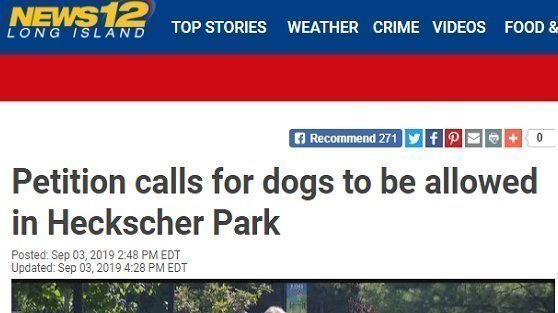 News 12 Long Island TV show on petition to allow leashed dogs at Huntington Heckscher Park is up now - interview by Doug Geed at: http://longisland.news12.com/story/40997229/petition-calls-for-dogs-to-be-allowed-in-heckscher-park?fbclid=IwAR0QZx1hSZFH59I-0ojDAqEMh8JQFnS-ysM03QPB-qqdZeSO6aus0BvWoUk -