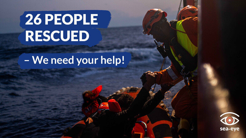 Joy and sorrow - closer than ever: Early yesterday morning, our crew rescued 26 people from two boats. We are relieved: they are safe. But this rescue took place at a time of mourning: 61 people lost their lives in the waves a few days ago due to the failure of authorities and the lack of civilian rescue vessels. We need your help to prevent this from happening again!