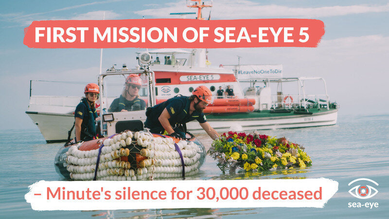 30,000 dead and missing in the Mediterranean: this is the result of Europe's border policies over the past decade. In remembrance of all those who have lost their lives or are considered missing on the world's deadliest migration route since 2014, I laid wreaths in the sea with the crew and held a minute's silence before the all-weather lifeboat departed.
