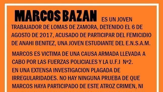 Petition update¡¡Libertad para Marcos Bazán!! Preso Inocente víctima de una Causa ArmadaMartes 18 de febrero 8 hs Todes a Tribunales