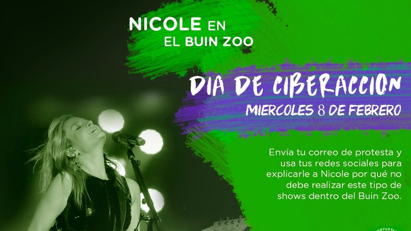 Por esta razón, este miércoles 08 entre las 12:00 y 22:00 hrs., hacemos un llamado a enviar correos y utilizar tus redes sociales para explicarle a Nicole porque no debe presentarse dentro del Buin Zoo.