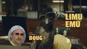 plot Doug is just a normal insurance worker until he meets LiMu and then he and LiMu are used in adds and also try to tell people to only pay for what they need when a pyramid scheme corrupts other insurances and plants spy's in Liberty Mutual so LiMu emu and Doug have to stop it even when there friends are bribed and turn on them maybe for plot purposes they could have a fight and split when Doug is captured (by another insurance company) so LiMu saves him and they realize that they need each other and that life without there partner in heroism is not very good so they aftr talking to the mighty statue of liberty there spirits are boosted so after some detective work they find out what is happening (people are ripping people off and stealing information and maybe some other bad stuff) and try to stop it they end up doing so in an epic fight and win.