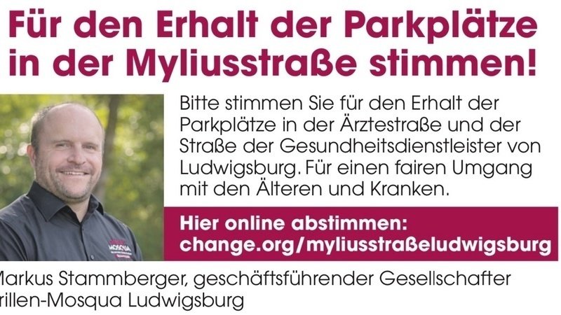 Um möglichst viele zu erreichen veröffentlichen wir diese Woche einen Aufruf zur Stimmabgabe für die Parkplätze in der Myliusstraße in den regionalen Zeitungen!