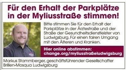Petition updateParkplätze in Ärztestraße erhalten - alles andere wäre egoistisch gegenüber Betroffenen!Heute im Ludwigsburger Wochenblatt