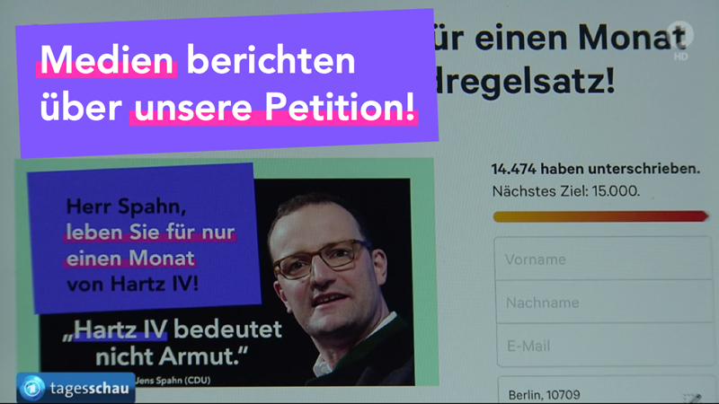 Kampanya güncellemesiHerr Spahn, leben Sie für einen Monat vom HartzIV-Grundregelsatz!22.000+ laden @jensspahn ein, für einen Monat von #HartzIV zu leben