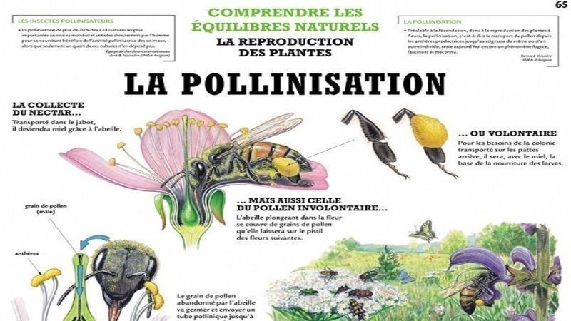 Découvrez la pollinisation, les pollinisateurs étant l'abeille sauvage, qui en représente à elle seule 40%, et ses 20.000 espèces, les papillons et leurs 250.000 espèces, les syrphes, les bourdons, les mites, les guêpes, les oiseaux et surtout le colibri, les coléoptères, les écureuils, les lézards dans une moindre mesure, les singes, et même les hommes dans la région du Sichuan en Chine où l'agriculture intensive a détruit toutes traces d'artisans de vie. Ils ont tous en commun de maintenir 80% de la biomasse terrestre, et d'être en déclin de 80% en seulement trente (30) ans d'activités humaine.