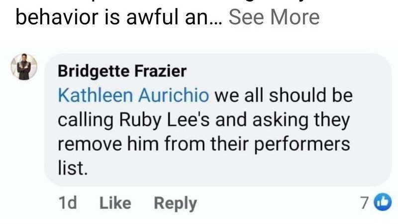 On January 9th, a local citizen was attacked by an opposing political party for attending a Trump rally. Bridgette Frazier, member of the Bluffton Town Council called on her constituents to call this gentleman's place of employment where he played music for a living to have him fired. In doing so, his employer canceled all future shows. This gentleman has a family to provide for. Especially in these unprecedented times, we can't afford to lose our jobs. She took food off this gentleman's table for selfish politcal reasons and it was a politcal and orchestrated attack. In those comments on Bridgette Frazier's Facebook account, a friend of hers says he will play the "knockout" game for $50. Bridgette Frazier laughs, then tags another friend asking them to tag team. Bridgette Frazier has since made her Facebook account private although, there are plenty of screenshots with conversations that had taken place.