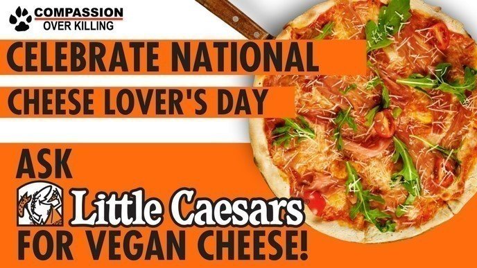TODAY, tell Little Caesars to celebrate National Cheese Lover’s Day by opening up its menu to non-dairy cheese lovers, too! Just visit http://bit.ly/LCvegancheese and use our sample comment below or a polite one of your own.