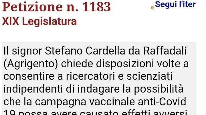 Petition updateLo STATO Finanzi la Ricerca per lo Studio delle Reazioni Avverse Post Vaccino CovidPetizione approdata in SENATO