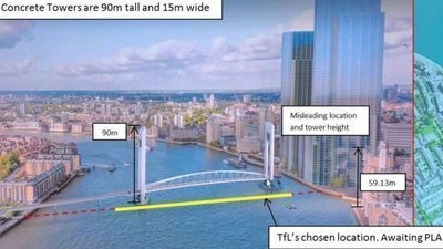 TFL have confirmed that the project costs, which have been independently estimated to be up to a staggering £600m+ over the 60 years of its life, are within their own projected assessments. That would include on top of the original construction cost (£400m+), an operating and maintenance cost of £2.4m per year. So far, about £10m has been spent on the project. We think its time to stop the financial haemorrhage for a mostly useless crossing at this part of the river, since TFL estimates the cycle demand in 2021 to be between 500 and 1,100 per weekday, whilst the pedestrian demand would be between 1,600 and 1.800.