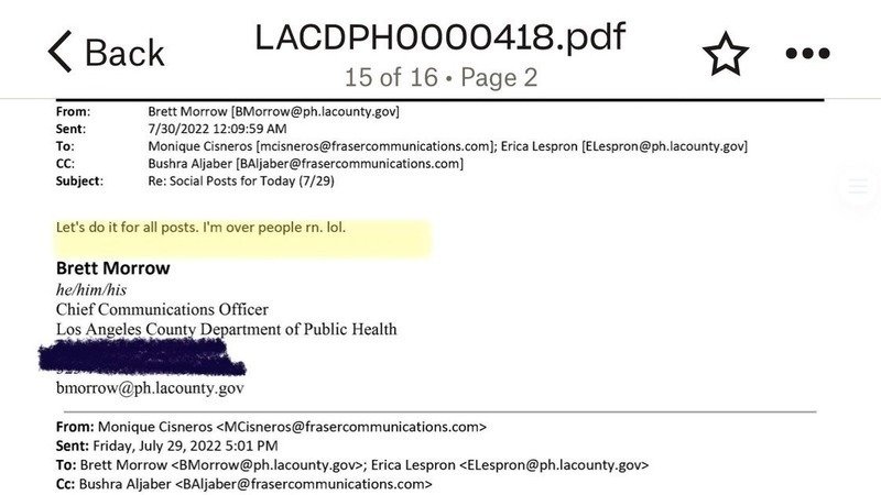 But it didn't stop Julie from getting critical information on how LA Health Department simply feels like they are not accountable to the public. The news went viral, including updates from Fox reporter Bill Melugin.