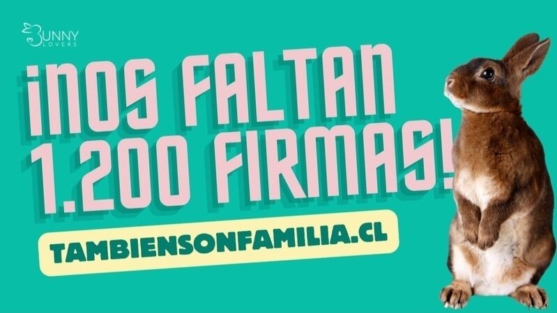 ¡Estamos muy cerca de lograrlo! Gracias a cada uno de ustedes que ha firmado y apoyado nuestra campaña También son familia, hemos llegado a un punto crucial: ¡solo nos faltan 1.203 firmas para alcanzar nuestra meta de 15 mil! Esta cifra nos permitirá seguir adelante con mayor fuerza en nuestra misión de otorgar a los conejos domésticos el estatus legal de animales de compañía, impulsando un cambio real en la tenencia responsable y su protección en Chile.