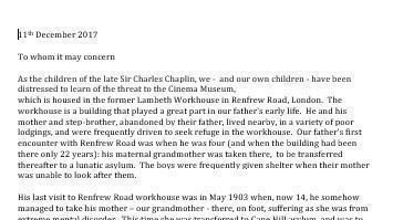 The letter gives a unique and personal insight into the importance of this building to Sir Charlie Chaplin and an insight into why who we are and what we do is so important.