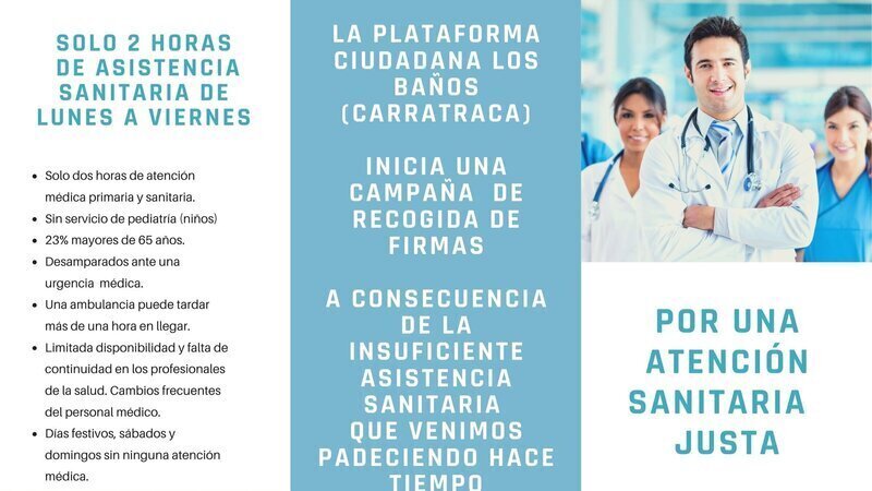 La Plataforma Vecinal Los Baños de Carratraca le envía este escrito haciéndose eco del malestar de numerosos residentes y ciudadanos preocupados por la situación actual de la asistencia sanitaria en nuestro municipio.