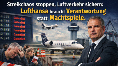 Ausfälle, Unsicherheit, schlechter planbare Verbindungen und immer neue Konflikte treffen am Ende nicht das Management, sondern die Menschen, die auf funktionierenden Luftverkehr angewiesen sind – privat, beruflich und wirtschaftlich. Deutschland braucht einen zuverlässigen Luftverkehr, auf den sich Reisende, Unternehmen und Regionen verlassen können. Genau diese Verlässlichkeit wird durch den fortgesetzten Abbau stabiler Strukturen beschädigt.