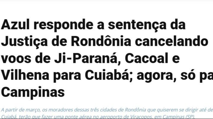 No entanto, o pedido liminar para obrigar as companhias aéreas a retomarem os voos foi negado. O juízo acatou apenas a obrigação de que os índices de cancelamento em Rondônia não ultrapassem a média nacional.