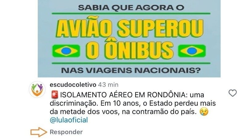 👉 Clique aqui (postagem Gov.BR), abra o comentário do @escudocoletivo, curta, responda com a sua experiência e marque autoridades de RO e o presidente Lula.