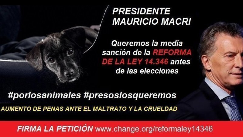 No podemos permitir que las campañas electorales, ni las elecciones demoren lo que es un pedido genuino de la sociedad, no podemos permitir que como en el 2017 se nos diga el próximo año, LOS ANIMALES SUFREN TODOS LOS DÍAS, LOS ANIMALES MUEREN VÍCTIMAS DE ATROCIDADES TODOS LOS DÍAS, LOS ASESINOS DE ANIMALES CAMINAN LIBRES POR LAS CALLES SIN CASTIGO.