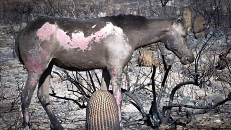 Caballos con la piel en carne viva y algunos perros y gatos con el pelo chamuscado deambulan desorientados. Algunos agonizan a la intemperie.