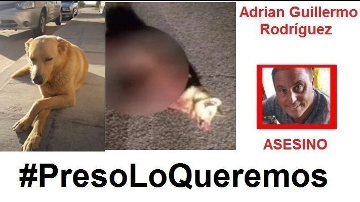 ADRIAN GUILLERMO RODRIGUEZ ató a un perro callejero a la caja de una camioneta y lo arrastró hasta matarlo.Rubio se llamaba el perrito callejero, muy querido por los vecinos de la zona en Mar del Tuyú.-