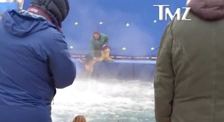 "Just gotta throw him in," is heard at the beginning of the disturbing video recording the filming of a scene from A Dog's Purpose. The leaked video (link below) captures a terrified german shepherd being forced into a pool of violent water against his will. The dog is eventually thrown in for almost a minute of footage.