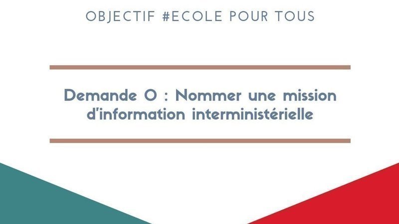 Une mission d'information interministérielle c'est une enquête conduite par un député à la demande du premier ministre pour faire toute la lumière sur un problème et proposer au gouvernement la mise en place de solutions. Les travaux d'une telle mission permettrait de nous sortir de l'angle mort, de nous rendre visible : premier pas pour que la république rétablisse le lien rompu de notre accès à l'école. Cette Mission d'Information Ministérielle aboutirait à une reconnaissance officielle de l'ampleur de la discrimination dont nous sommes l'objet dans l'accès à l'école et de ses conséquences sur nos parcours de vie, mais aussi à une mise en avant des 6 demandes que nous proposons pour résoudre ces problèmes.