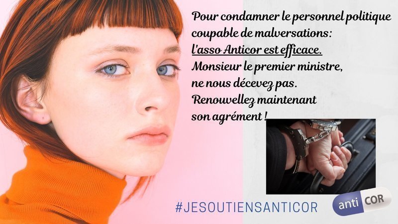 Je vous invite à soutenir cette autre pétition lancée par une militante de l'association ANTICOR qui attend le renouvellement de son agrément pour pouvoir ouvrir des enquêtes lorsque le parquet classe une affaire "politique".