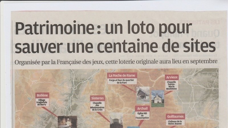 Le loto du Patrimoine, un espoir pour nos racines menacées, commenté dans cet article de LA PROVENCE par Jean Noêl BEVERINI, sans oublier la ferme, bien sûr....