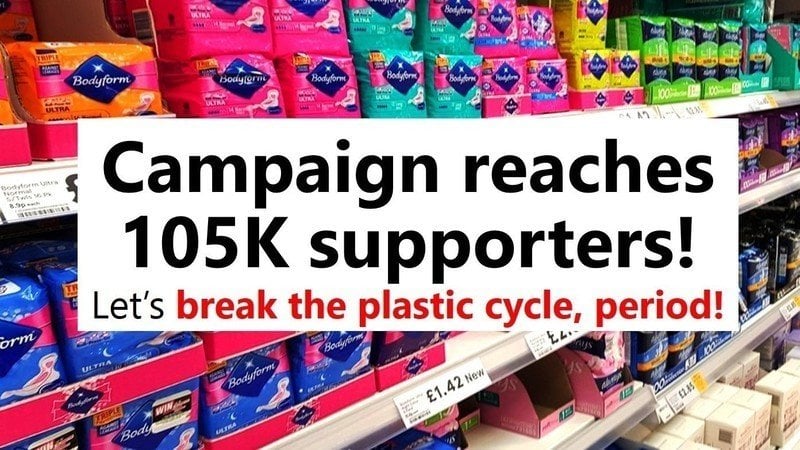 Today the campaign has reached an amazing 105,000 supporters which is absolutely fantastic and it could not have been reached without you all - so thank you! It is great to see more and more people highlighting and becoming aware of the environmental impact the avoidable plastic content in period products is having globally!