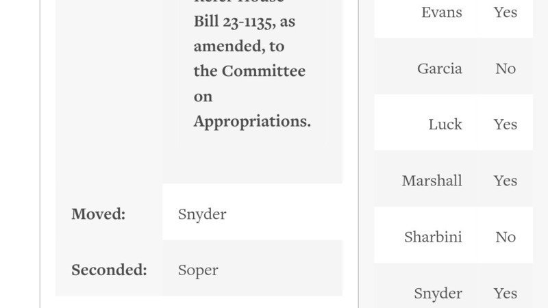 Here is the list of how the voting went at the meeting..... if you are in ADAMS, JEFFERSON, DENVER, especially, including the GVR area your rep voted "No"... Bacon, Epps, Woodrow, Sharbini, and Garcia.