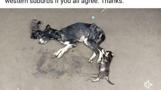A female dog with her two pups is starving to death in Dahanu (Maharashra). The place is around 100 kilometres from the financial capital of India which is Mumbai. The city is not only the financial capital but also the centre of cinema (Bollywood). India's most famous and rich people reside in this city. Right from the richest businessman like Ambanis and the Tatas to the rich and famous Bollywood actors like Amitabh Bachchan and the Khans (Salman, Sharukh and Aamir).