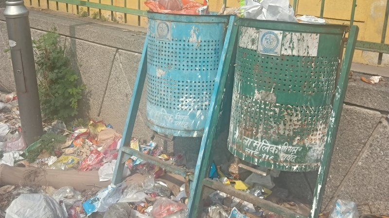 The residents of the area are using the park bins for throwing their own kitchen and home garbage. One finds baby diapers and stale food along with all the rubbish of the house.