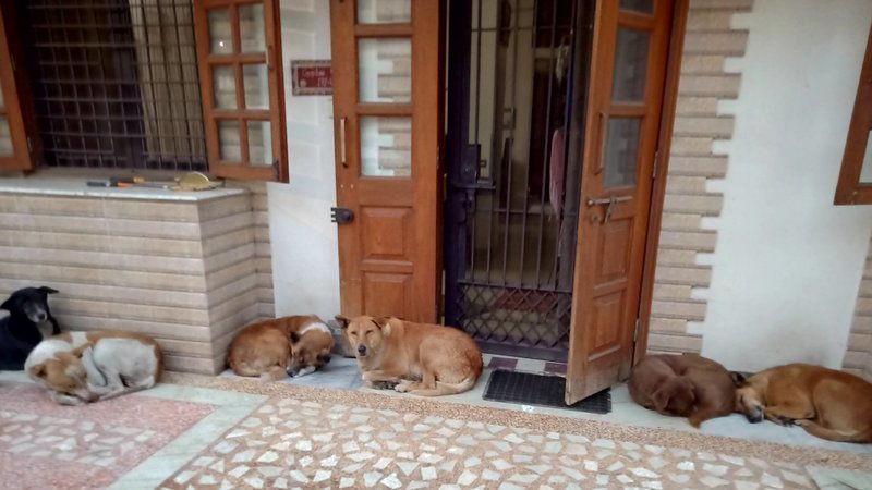 Nikhil stays in ground floor so he opens up his gate for the dogs to take shelter during extreme cold and rain in his courtyard.
