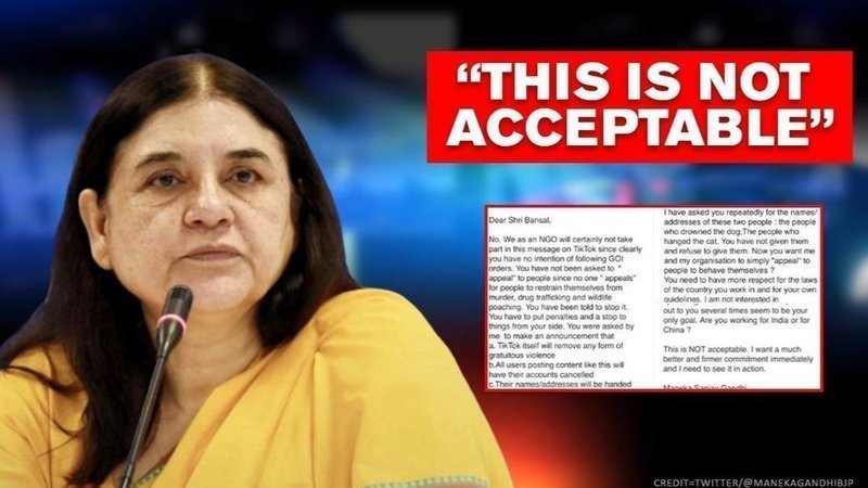 Maneka Gandhi has written a very strong letter to the Tiktok head where she has said that the company is not following the government of India orders and not abiding by the Indian laws. To read the letter kindly on the link below: