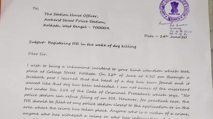 Nobody knows who did this terrible thing to the dog but Susmita wants justice for him. The law says that an FIR may be lodged by any of the following: